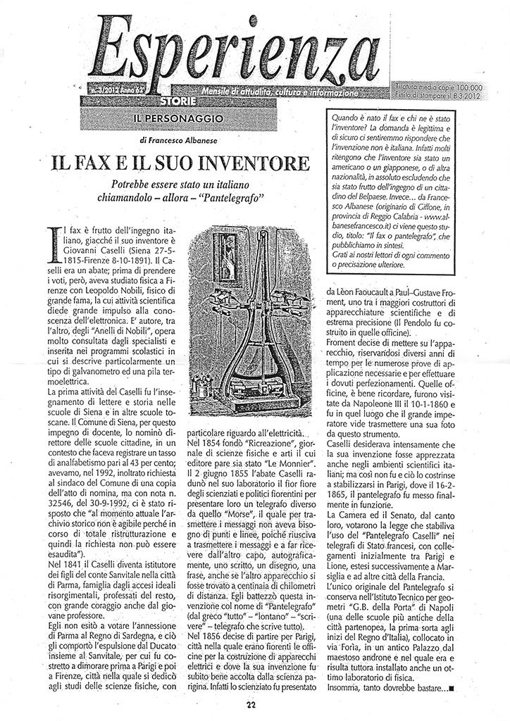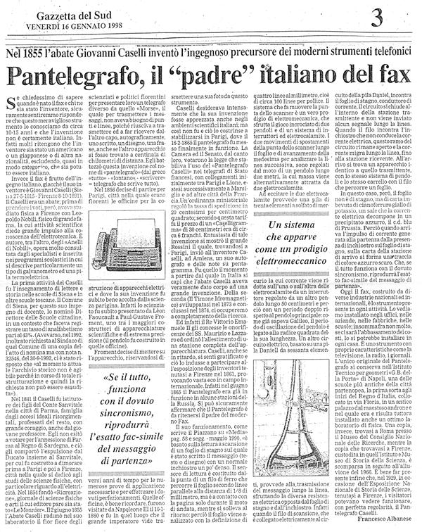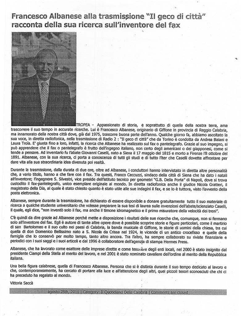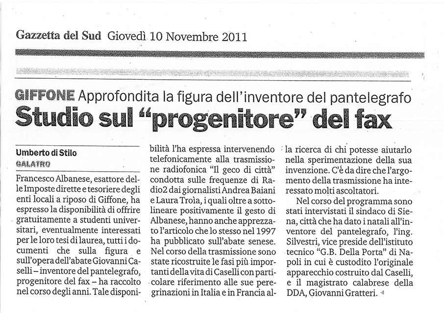 Rai radio 2 Torino – 13/07/2011 – Il geco di città, Trasmissione dedicata al fax o Pantelegrafo di G. Caselli.